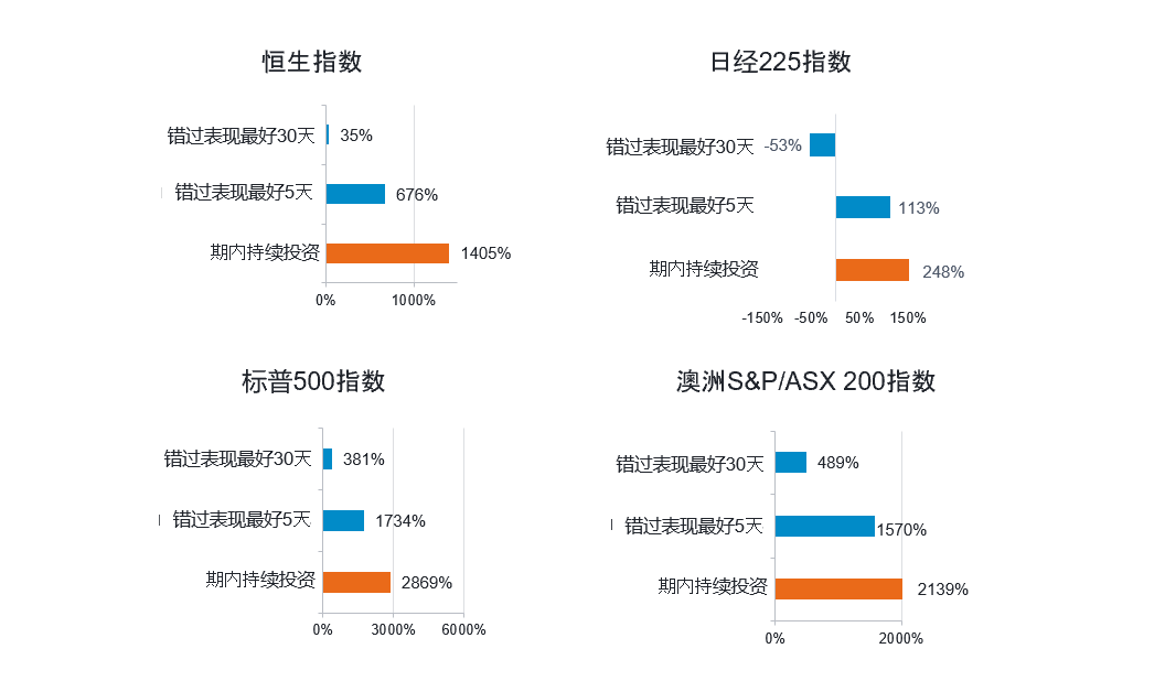 短期市场回落或为投资者提供较吸引的入市机会。保持耐性并专注于长线趋势的投资者,将更有利于在市场复苏时受惠。分析主要指数显示,错过市场表现最好的日子,将显著影响长期投资回报。