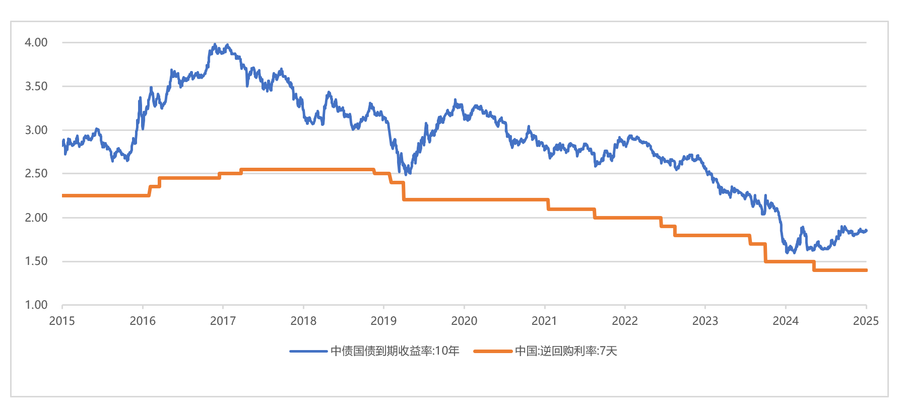 近10年利率中枢不断下行(单位:%)